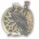 Vintage collage features raven with crown, pocket watch and round architectural element