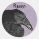 This vintage illustration is a majestic black crow staring over his shoulder. The background is a textured purple. The text reads Raven. See my store Art by MAR for matching products with this design.