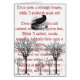 A vintage raven on a background of red text in a wonderful Gothic feeling font, from Edgar Allan Poe's haunting poem "The Raven" appears on this striking card along with dark bare trees. A very small attribution to Poe appears on the inside bottom left. Blank for your own personal message.