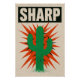 A striking visual: bright green cactus against a backdrop of red and black spikes, with the word "SHARP" in capitals. This poster combines aesthetic punk, vegetal symbolism and graphic power. The interior decorating is impressive.