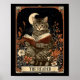 The Reader Tarot Card Cat Reading Book Floral Moon Poster