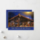 Beautiful Nativity scene painting on the front of the card with "The Reason for the Season" printed in elegant gold font on a contrasting dark background. On the inside is the message "With Much Love From" and a place for the name of the person or family as well as a spot to include your personal photo. All elements are changeable if you wish to customise any of them. Includes an envelope.