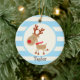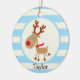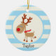 the Red Nosed Reindeer; Blue Stripes Ceramic Tree Decoration