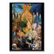 While the guests are absorbed in witnessing this event, the Jester is aware of our presence, as we join them on this special occasion. The Jester is the story-teller and invites us into the painting with clues as to its mystery. The black and white colours of his diamond-patterned costume represent two opposites – Yin and Yang / masculine and feminine / positive and negative. These opposites have nothing to do with judgement - nothing to do with good and bad/evil. All the symbols are good and vital. The Universe is made of energy and these opposite forces are present in everything making the Universe work: for example fire/water, up/down, black/white, day/night, push/pull and so on. To illustrate this opposite nature we may refer to them as masculine and feminine or positive and negative. Just as the intelligent, clever and witty Jesters of mediaeval times had the perilous job of explaining difficult situations to the kings, in a humourous and simple way (so that the king would not fly into a rage and send them to the guillotine), our Jester also has the difficult job of explaining something for which there are no words. Sometimes he acts as a mirror of ourselves, or he speaks in riddles showing us that there is more than one way of looking at things. He uses universal symbols and archetypes, and we can make of them, or take from them as we wish – for they are parables (stories within stories) with as many interpretations as there are viewers. This painting could just as rightly be a pretty picture of a beautiful princess - to a young girl, as it could represent something of a deeper nature to others. Perhaps it could represent the union of universal and personal consciousness. Perhaps it could represent the conscious, subconscious and super-conscious minds. The subconscious knows things which need to become conscious in the brain, and understood, for us to become enlightened and whole. Having our masculine (intellect) and feminine (feelings, intuition, emotions) working in balance makes us whole. Perhaps we need to honour our intuition (feminine) before we take physical action (masculine). All interpretations of Visionary Art are equally right and they are numerous. Often several symbols have the same meaning and serve to reinforce the same message. It is preferable not to intellectualise about the painting (masculine principle, head), as these kinds of Visionary paintings are best viewed from our hearts and our intuitive feelings (feminine principle) about them. I hope there is a special message in this painting for you.