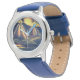 The blue band is the right color for a boys watch. My grandson loves lacrosse and the watch is easy to put on. He is ten years old. The lacrosse picture is very clear and I like the blue hands on the watch. It's good for teaching time.