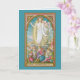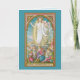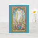 Wish your family and friends “Easter Blessings” with this lovely depiction of the Resurrection framed with an aqua blue border. Done in vibrant spring colours, this traditional image was inspired by mediaeval Gothic prototypes. It depicts Christ at the very moment he rises from the tomb. + Because cliff-side rock-cut tombs were not common in Western Europe, Christ’s tomb here is a rectangular stone box standing above ground in the manner of Roman sarcophagi. Its lid, having been removed by an angel who is not pictured, lies on a diagonal across the opening behind Jesus. The tomb is surrounded by a half dozen or so of Roman soldiers. Most of the soldiers are still asleep but one or two begin to react with amazement to the scene unfolding above them. Clad in pristine white drapery, Jesus hovers above them with his bare feet not yet completely free of the tomb. He is framed by a mandorla, an almond-shaped radiance edged with stylised sun rays. He carries a “Resurrection Banner” in his left hand. The banner is suspended from a tall, thin cross and bears a cross--more pink in colour than the customary red--on a white field. The banner represents Christ’s victory over death. His right hand faces the viewer palm outward. The gesture is one of greeting or triumph as opposed to blessing (cf. our VVP 08). The wound left by the nail with which that hand was fastened to the cross is clearly visible as is the wound in his side where he was pierced with a lance. + Below the scene is a quote from Scripture. It reads: “Surrexit… sicut dixit”, that is, “He is risen… even as he said” (Matthew 28:6 – ASV [American Standard Version]) + Also available with a green, yellow, violet, or bright pink border. + Image Credit (SAU 041): Antique image in chromolithography entitled Surrexit… sicut dixit [He is risen… even as he said] originally published by the Socièté de St. Augustin, Bruges, Belgium, late 19th century, from the designer’s private collection of religious ephemera. Quote (Matthew 28:6): ASV [American Standard Version], which is in the Public Domain.