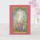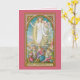 Wish your family and friends “Easter Blessings” with this lovely depiction of the Resurrection framed with a bright pink border. Done in vibrant spring colours, this traditional image was inspired by mediaeval Gothic prototypes. It depicts Christ at the very moment he rises from the tomb. + Because cliff-side rock-cut tombs were not common in Western Europe, Christ’s tomb here is a rectangular stone box standing above ground in the manner of Roman sarcophagi. Its lid, having been removed by an angel who is not pictured, lies on a diagonal across the opening behind Jesus. The tomb is surrounded by a half dozen or so of Roman soldiers. Most of the soldiers are still asleep but one or two begin to react with amazement to the scene unfolding above them. Clad in pristine white drapery, Jesus hovers above them with his bare feet not yet completely free of the tomb. He is framed by a mandorla, an almond-shaped radiance edged with stylised sun rays. He carries a “Resurrection Banner” in his left hand. The banner is suspended from a tall, thin cross and bears a cross--more pink in colour than the customary red--on a white field. The banner represents Christ’s victory over death. His right hand faces the viewer palm outward. The gesture is one of greeting or triumph as opposed to blessing (cf. our VVP 08). The wound left by the nail with which that hand was fastened to the cross is clearly visible as is the wound in his side where he was pierced with a lance. + Below the scene is a quote from Scripture. It reads: “Surrexit… sicut dixit”, that is, “He is risen… even as he said” (Matthew 28:6 – ASV [American Standard Version]) + Also available with an aqua blue, green, yellow or violet border. + Image Credit (SAU 041): Antique image in chromolithography entitled Surrexit… sicut dixit [He is risen… even as he said] originally published by the Socièté de St. Augustin, Bruges, Belgium, late 19th century, from the designer’s private collection of religious ephemera. Quote (Matthew 28:6): ASV [American Standard Version], which is in the Public Domain.