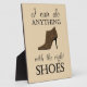 This cute design features a high heel shoe and the text "I can do anything with the right shoes". The perfect gift for any shoe lover!