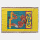 A quality printed throw has its advantages. This is a much finer weave throw than its loopier cousins, and though lighter, it is worth the investment for custom room accessorizing. The back is much prettier than the typical brown, and the fringe on the long sides very vivid, the selvage nicely done. Before photographing, I washed the throw in cold water, delicate, with a thicker woven throw the same size. On tumble dry low, this throw was dry in half the time as the other. This is a very practical quality if you use throws for furniture covers or to wrap up in frequently. The sleekness of the fabric makes it a great layer for accenting or protecting without the feeling of sitting on too much stuff. Perfect for napping or when you feel a light chill coming on. The color printing is beautiful and on this fabric, matched the design and color of my Photoshop image. This is an advantage for blending room fabrics and colors. The fringe on the short sides prints the colors from the design image and therefore varies from the side fringe. I streaked a white fractal line through the plaid pattern to give the illusion of weaving. This printed as crisp as an illusory thread, and put some white in the short side fringe, showing another advantage of print vs loomed- for artistic purposes, line lines, detail, and color integrity can be planned and preserved. My loomed throws have color limitations and more of a needlepoint texture. Print throws reproduce an exact image. The throw felt a little stiff straight out of the package, but this went away in the first delicate wash. Of course I searched the wash water for ink or bleeding and there was none.