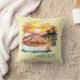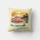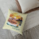 Fun "summer vibes" throw pillow features watercolor digital art design of a cute lazy sloth floating down the river with #riverlife text