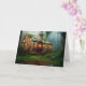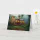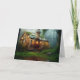 A Steampunk style workshop on a mossy river bank - a digital art greeting card created with AI software