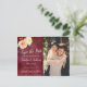 This collection features a moody marsala red background with trendy typography and floral accents. Easily personalise the design with your wording to make these save the date postcards totally unique to your special day.