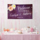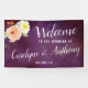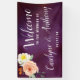 This collection features a moody eggplant purple background with trendy typography and floral accents. Easily personalise the design with your wording to make this banner totally unique to your special day.