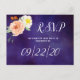 This collection features a moody midnight blue background with trendy typography and floral accents. Easily personalise the design with your wording to make these RSVP postcards totally unique to your special day.