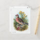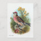 Beautiful vintage image of a very colourful rose linnet perched on a branch and surrounded by leaves and flowers.