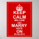 The Royal Wedding ~ Fun Poster. Keep Calm And Marry On! Spoof of the famous World War Two Poster, 'Keep Calm And Carry On'. Text Reads Keep Calm William And Marry Kate On 29-04-2011.
