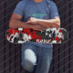 I cant speak for how it holds up as a fully assembled skateboard. But I've had quite a few decks in my life and this seems solid. I'm using it fro a Twin Peaks art project. So far, it has been perfect! very smallJust a few whit marks in the black parts, Nothing serious. Very small defects.