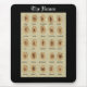 A diagram of the Norse runes. They are burned into pieces of wood. Their names are printed underneath them.