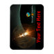 A shiny, golden fractal image, sort of a cross between a Fresnel lens and a bird cage, represent a Soviet-era lunar landing module. The image is superimposed on an a background resembling the dark side of the moon and stars. Russian text reading "Лунный корабль" - moon ship, or lunar ship, also appears, bracketing a red star. The Soviet Union developed a lunar lander intending to land two cosmonauts on the moon before the United States could do so. The vehicle was successfully tested in earth orbit four times. Development problems with the rocket intended to take it to the moon led to the cancelation of the USSR's manned lunar program.