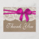 The rustic pink bow collection is a stunning design featuring a lovely rustic burlap effect background with a romantic vintage white lace effect trim finished with a stunning dark pink ribbon with bow.
