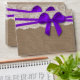 The rustic purple bow wedding collection is a stunning design featuring a lovely rustic burlap effect background with a romantic vintage white lace effect trim and a stunning purple bow.