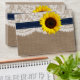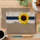 The rustic sunflower collection is a stunning design featuring a lovely rustic burlap effect background with a romantic vintage white lace effect trim finished with a stunning sunflower and navy blue ribbon.