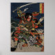 Katsukawa: Ichijō jirō tadayori notonokami noritsune, 1818. Vintage Japanese print shows two samurai warriors fighting on the seashore or bank of a river. Colour woodcut by Katsukawa Shuntei, 1818. Ukiyo-e digitally restored and enhanced for print.