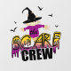 'The Scare Crew'. This design works well for either a children or adults. Bold typography has a gold and purple colour palette. Search ID1002 to see other products with this scary Halloween design.