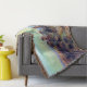 A quality printed throw has its advantages. This is a much finer weave throw than its loopier cousins, and though lighter, it is worth the investment for custom room accessorizing. The back is much prettier than the typical brown, and the fringe on the long sides very vivid, the selvage nicely done. Before photographing, I washed the throw in cold water, delicate, with a thicker woven throw the same size. On tumble dry low, this throw was dry in half the time as the other. This is a very practical quality if you use throws for furniture covers or to wrap up in frequently. The sleekness of the fabric makes it a great layer for accenting or protecting without the feeling of sitting on too much stuff. Perfect for napping or when you feel a light chill coming on. The color printing is beautiful and on this fabric, matched the design and color of my Photoshop image. This is an advantage for blending room fabrics and colors. The fringe on the short sides prints the colors from the design image and therefore varies from the side fringe. I streaked a white fractal line through the plaid pattern to give the illusion of weaving. This printed as crisp as an illusory thread, and put some white in the short side fringe, showing another advantage of print vs loomed- for artistic purposes, line lines, detail, and color integrity can be planned and preserved. My loomed throws have color limitations and more of a needlepoint texture. Print throws reproduce an exact image. The throw felt a little stiff straight out of the package, but this went away in the first delicate wash. Of course I searched the wash water for ink or bleeding and there was none.