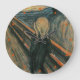 The Scream by Edvard Munch on a wall clock with dark orange, like in the painting , hour markers