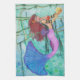 Original watercolor painting by Sandra Gale of a fantasy mermaid holding a glowing ball. This under Sea design makes a beautiful wearable piece of art. The pale colours in a sea foam green underwater scene looks uniquely beautiful.