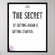 Keywords: Motivational quote, Getting ahead, Getting started, Inspirational poster, Initiative, Progress, Drive, Elegant design, Productivity boost, Home decor, Gift idea, Daily motivation, Empowerment, Success journey, Transformative action.