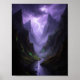 Beneath a storm-ravaged sky, jagged mountains loom like obsidian teeth over a narrow river that carves its way through the valley. Bolts of lightning tear across the heavens, illuminating the mist that coils between the peaks. Along the moss-clad cliffs, faint emerald lights pulse from within the tangled roots and stone, as though the land itself breathes with some ancient, hidden power. The air hums with both beauty and menace, a place where forgotten gods may still whisper—and where every shadow promises secrets untold.