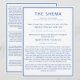 These cards feature the words of The Shema, a prayer which is the Jewish daily declaration of faith. It contains exerpts from the Torah, including Deuteronomy 6:4–9, Deuteronomy 11:13–21 and Numbers 15:37–41. It is written out in both Hebrew and English. Designed with dark blue text on a white background for ease of reading. You can edit all the text as needed. For more useful Jewish religious supplies, visit my store: Zazzle.com/Shayna_Punim ✡ For custom orders, message me on Zazzle