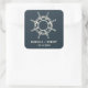 Designed to match our The Blue Compass wedding invitations and accessories this nautical chic wedding sticker features a vintage style hand drawn ship's wheel illustration in navy blue.