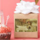 The Shrine (1895) by JW Waterhouse is a vintage Victorian Pre-Raphaelite fine art portrait painting featuring a beautiful young woman. The lady is bending over to smell roses in a vase in front of an outdoor shrine in the spring garden. A flight of stairs are in the background.
