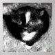 This cute kitten walked into my husband’s stables and ended up staying there. I’ve digitally altered the image to look like a close-up, black-and-white portrait of a tuxedo kitten, captured in a moment of quiet curiosity. The kitten's large, reflective eyes gaze intently, drawing focus amid the stark contrast between its dark fur and white markings. Soft textures surround the kitten, enhancing the feeling of warmth and solitude, while the monochromatic palette adds a layer of artistic mystery to the composition.