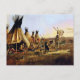 Charles (CM) Russell, the “cowboy artist”, created more than 2,000 paintings of cowboys, Indians, and landscapes set in the Western United States. He lived and worked among the cowboys and the Blood Indian tribe in his younger years. This image is called “The Silk Robe” and depicts a large animal skin being laid out to dry in an Indian village with teepee background.