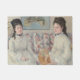 This design features a painting by the French Impressionist artist Berthe Morisot (1841–1895). It depicts two elegant sisters seated together on a sofa. Both of the sisters look alike: they have similar brunette hairstyles and they are both wearing dresses that are white with blue dots. They are wearing black choker-style necklaces. The ladies are in an elegant sitting room. The sister on the right is holding a fan in her hand. The original artwork was painted by Berthe Morisot in 1869.