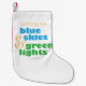 Blue skies & green lights! It's every skydiver's wish! Brighten someones holiday with this colourful christmas stocking!