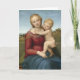 The Small Cowper Madonna (c. 1505) by Raphael is a Renaissance masterpiece that depicts the Virgin Mary tenderly holding the Christ Child in a serene landscape. The painting exemplifies Raphael’s signature style, chraacterised by soft modelling, harmonious composition, and delicate colour transitions. Mary, dressed in a red gown with a blue mantle, gazes gently at the viewer while the infant Jesus sits comfortably on her lap, symbolising maternal love and divine grace. The tranquil countryside in the background enhances the painting’s sense of peace and natural beauty, reflecting the influence of Leonardo da Vinci and Raphael’s deep devotion to religious themes.