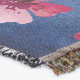 A quality printed throw has its advantages. This is a much finer weave throw than its loopier cousins, and though lighter, it is worth the investment for custom room accessorizing. The back is much prettier than the typical brown, and the fringe on the long sides very vivid, the selvage nicely done. Before photographing, I washed the throw in cold water, delicate, with a thicker woven throw the same size. On tumble dry low, this throw was dry in half the time as the other. This is a very practical quality if you use throws for furniture covers or to wrap up in frequently. The sleekness of the fabric makes it a great layer for accenting or protecting without the feeling of sitting on too much stuff. Perfect for napping or when you feel a light chill coming on. The color printing is beautiful and on this fabric, matched the design and color of my Photoshop image. This is an advantage for blending room fabrics and colors. The fringe on the short sides prints the colors from the design image and therefore varies from the side fringe. I streaked a white fractal line through the plaid pattern to give the illusion of weaving. This printed as crisp as an illusory thread, and put some white in the short side fringe, showing another advantage of print vs loomed- for artistic purposes, line lines, detail, and color integrity can be planned and preserved. My loomed throws have color limitations and more of a needlepoint texture. Print throws reproduce an exact image. The throw felt a little stiff straight out of the package, but this went away in the first delicate wash. Of course I searched the wash water for ink or bleeding and there was none.
