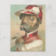 Superb vintage image of a dog dressed as a jockey in red and white colours and smoking a cigarette. His whip is crowned with the head of a horse.