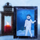 Painting of "The Snowman's Escape" by Alfred Fox . Collectable Postcard . alfred_fox_art @ Zazzle