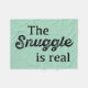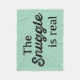 Snuggle up with this awesome blanket. This design features "The Snuggle Is Real" pretty black typography on a subtle teal and white polk dotted background.