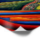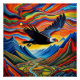 A.I. created interpretation of vivid colors ripple through the sky and the Andes mountains in a surreal landscape, while a Condor soars majestically above. Below, a winding river meanders through a valley dotted with cultivated fields.