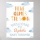 Boho sun, rainbow and clouds boy baby shower welcome sign.