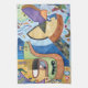 A colourful abstract design on a towel ready to tackle the kitchen duties.