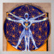 The Vitruvian Man on the "Flower of Life"(the basic Electro-Magnetic structure of the universe).Original mural painted on the wall of the 100 year old church on the corner of Rose and Hampton in Venice, CA that has since been painted over. Named for the 1st century B.C. architect Vitruvius, author of an architectural treatise that inspire Leonardo Da Vinci, which included theories on the proportions of the human body in relation to the Golden Mean (1 to 1.618 or 1 to 0.618). This work is part of The Sacred Geometry Paintings (TM) Series which numbers over 1,000 canvases to date by the contemporary visionary artist David Alexander English. AVAILABLE now on your choice of 5 different kinds of paper or canvas from $19.95 on 11"x17" cardstock to $395 on 5ftx3ft canvas.