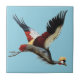 This 19th-century colour lithograph, created in a naturalistic style, captures the South African crowned crane (Balearica regulorum) in mid-flight. The crane's wings are spread wide like a fan, with orange-brown crown feathers contrasting sharply against its red and black wings. The intricate gradient details of its grey-white feathers are delicately rendered through multi-colour lithographic printing, showcasing both the species' features and dynamic beauty. Symbolically, the crane's soaring flight represents freedom and vitality, and its vibrant colours and elegant form are often regarded as sacred to African cultures. As a scientific illustration, this work has both academic and artistic value—documenting biological accuracy while conveying the beauty of nature. It reflects the typical function of 19th-century natural history illustrations, using visual art to promote scientific knowledge.